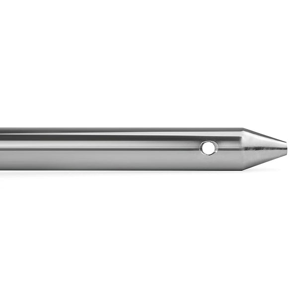 The pointed tip naturally works into the ground and creates its own path - no extra force needed in most soils.